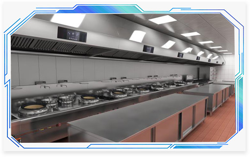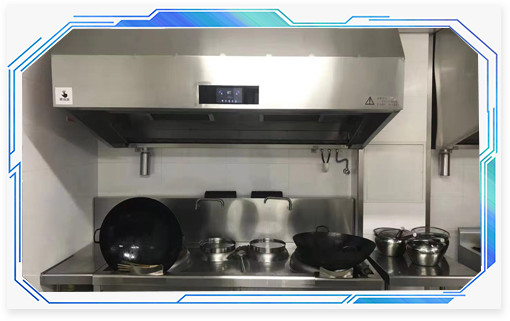 浙江杭州廚夫人是一個開放式的廚房餐廳因為對油煙處理要求比較高,經過前期調查對比后,確認使用壹指藍的無管道內循環油煙機更加符合他們的環保低碳的理念。